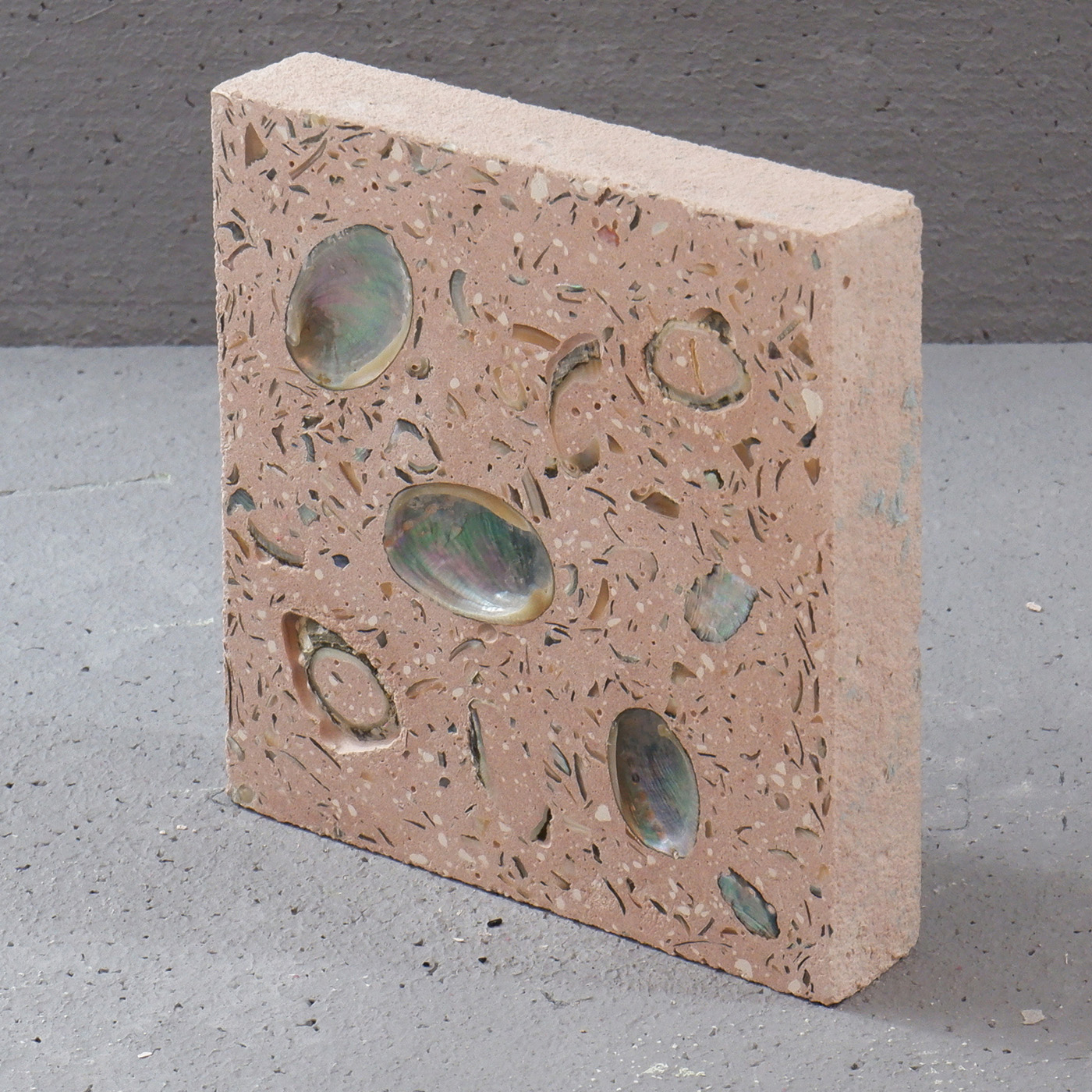 The Observatory is a lightweight polycarbonate structure enclosing the exhibition rooms, reflecting and filtering the shades of the water and the surrounding vegetation. It is fully enveloped by a curtain where cut-out shapes allow light to filter through in different ways, creating a facade made by light, while the roof is covered in shells, filtering rainwater. A site-specific material research has been developed for the project, resulting in the Surf and Turf Terrazzo composites, with local species of shells and horticultural supplies.